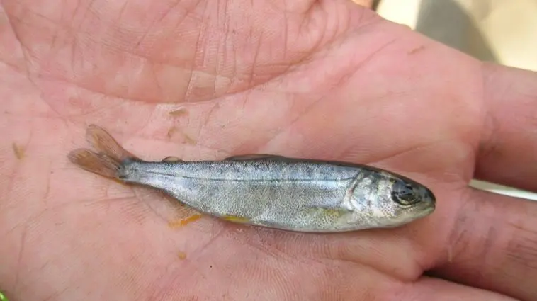 They hatch in freshwater streams, at which point they are called alevin. Although they have hatched, they still have a yolk sac upon which they feed. Once they have absorbed the yolk sac, they are called fry and they begin feeding on the plankton in the stream. They eventually mature into parr, which are also called fingerlings. After about 12–18 months in freshwater, they move to the brackish waters of estuaries, ecosystems where freshwater rivers meet the ocean. At this point, they are usually called smolts. After a few months, they venture out into the ocean, where they will spend several years growing.