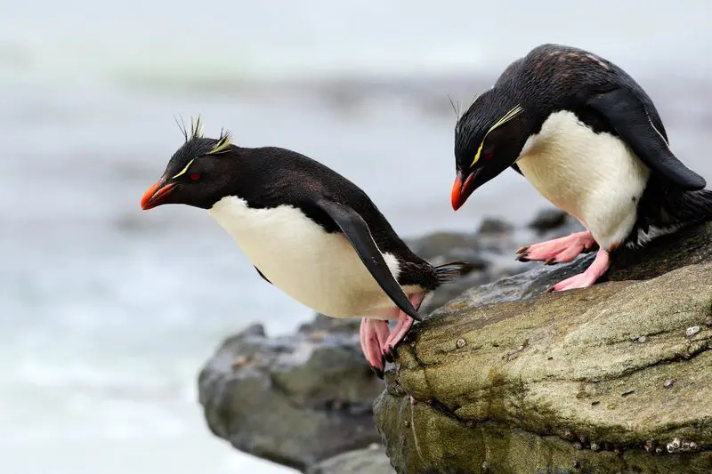 Penguins have a thick, waterproof fur-like feathers that cling close to their bodies. They can dive underwater for over 15 minutes. They have great eyesight underwater and poor vision in the air, while most birds have great eyesight in the air and not underwater. Clearly, the penguin was engineered for a different environment than most birds.