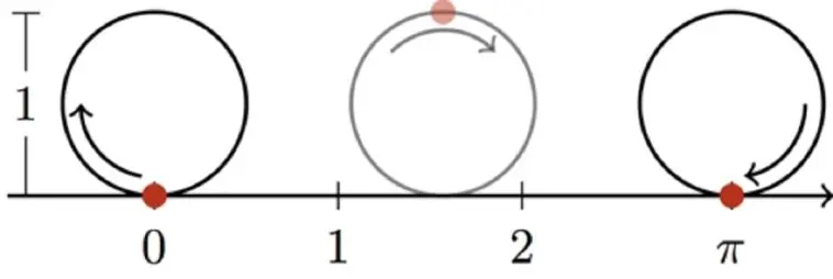 One of them is the value for pi, the ratio of the distance around a circle to the diameter of that circle. The drawing at the top of this post gives you a way to visualize what pi means. If a wheel has a diameter of 1 meter, it will travel a distance of pi meters when it makes one complete rotation without slipping. It turns out that the value of pi cannot be calculated in an exact manner. Instead, its value must be approximated.