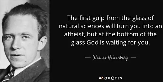 Obviously, someone who holds to the NOMA view would not say that God is waiting for you after you have drunk your fill from the “glass” of the natural sciences. Since Heisenberg wrote most of his work in German, I decided to use my limited knowledge of the language (which always amused my German Ph.D. adviser) and Google Translate to reconstruct the original quote.