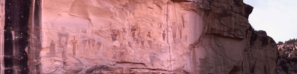 If you leave Interstate 70 and head north through the almost-ghost-town of Thompson Springs, Utah, then follow the dirt road for four miles, you come to something astounding. At the Sego Canyon picnic area, there is a thirty-foot high by one hundred foot long sandstone cliff covered with paintings and carvings made by artists over the centuries.